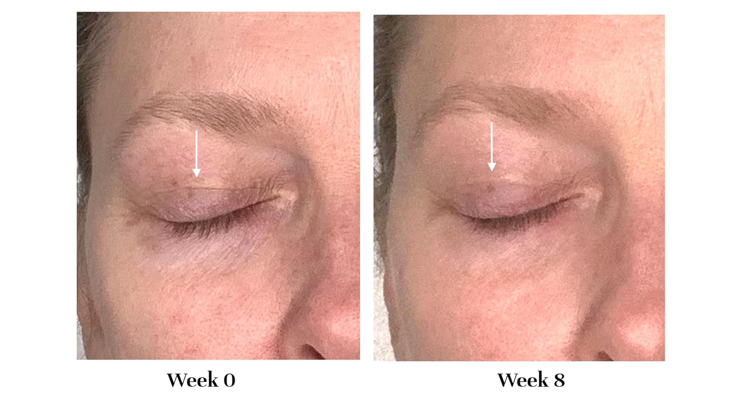 Twice daily, apply a small amount to ring finger and gently tap onto eyelids to avoid tugging. Allow to set for 1 minute before following with other products.
